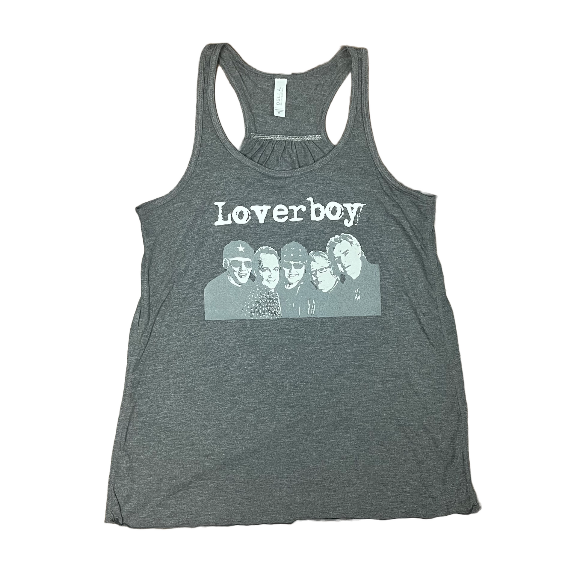 Dark Grey Women's Tank Top with Loverboy Logo and Band.